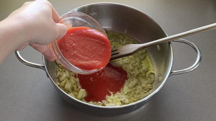 Al posto della passata di pomodoro puoi utilizzare anche la polpa o i pelati, leggermente schiacciati con un mestolo di legno, puoi sostituire la cipolla con l'aglio oppure puoi speziare il tutto con una macinata di pepe fresco.