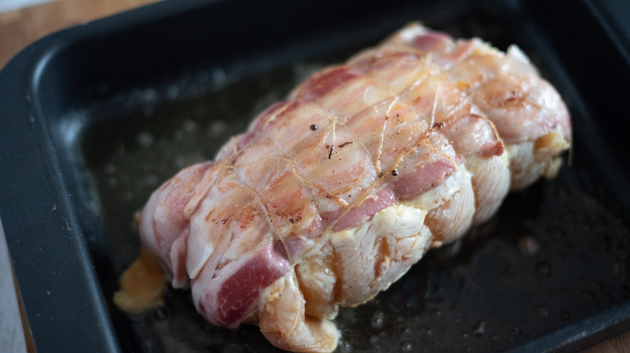 Arrotolatelo abbastanza stretto. Copritelo con le fette di pancetta e legatelo con dello spago 5.