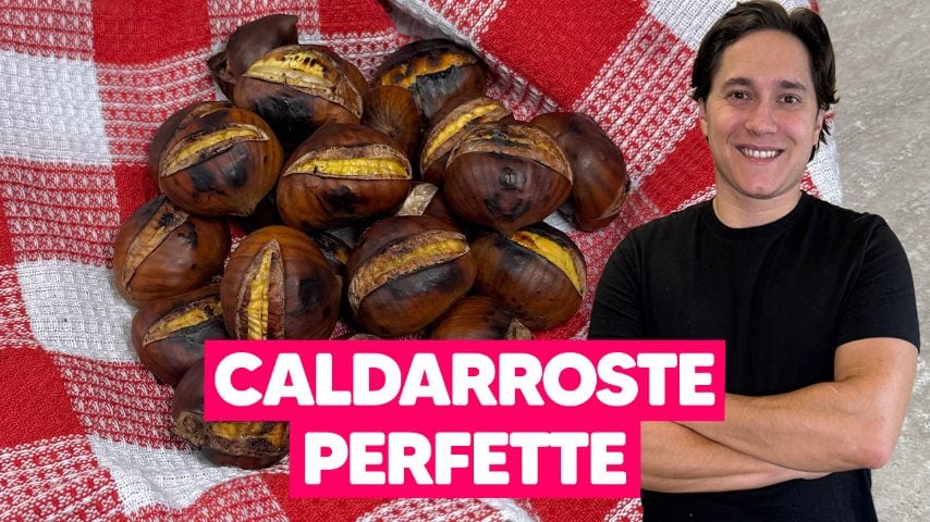 Come ti mostra il nostro Michele, l'uso del tegame con i fori, posizionato su uno spargifiamma, permette al calore di distribuirsi in modo uniforme, con una corretta dispersione del vapore, così che le castagne si abbrustoliscano al punto giusto. Inoltre, per sbucciarle in modo facile e veloce, non dimenticare di lasciarle in ammollo per almeno 1 ora e farle poi riposare, dopo la cottura, in un canovaccio umido per una decina di minuti.