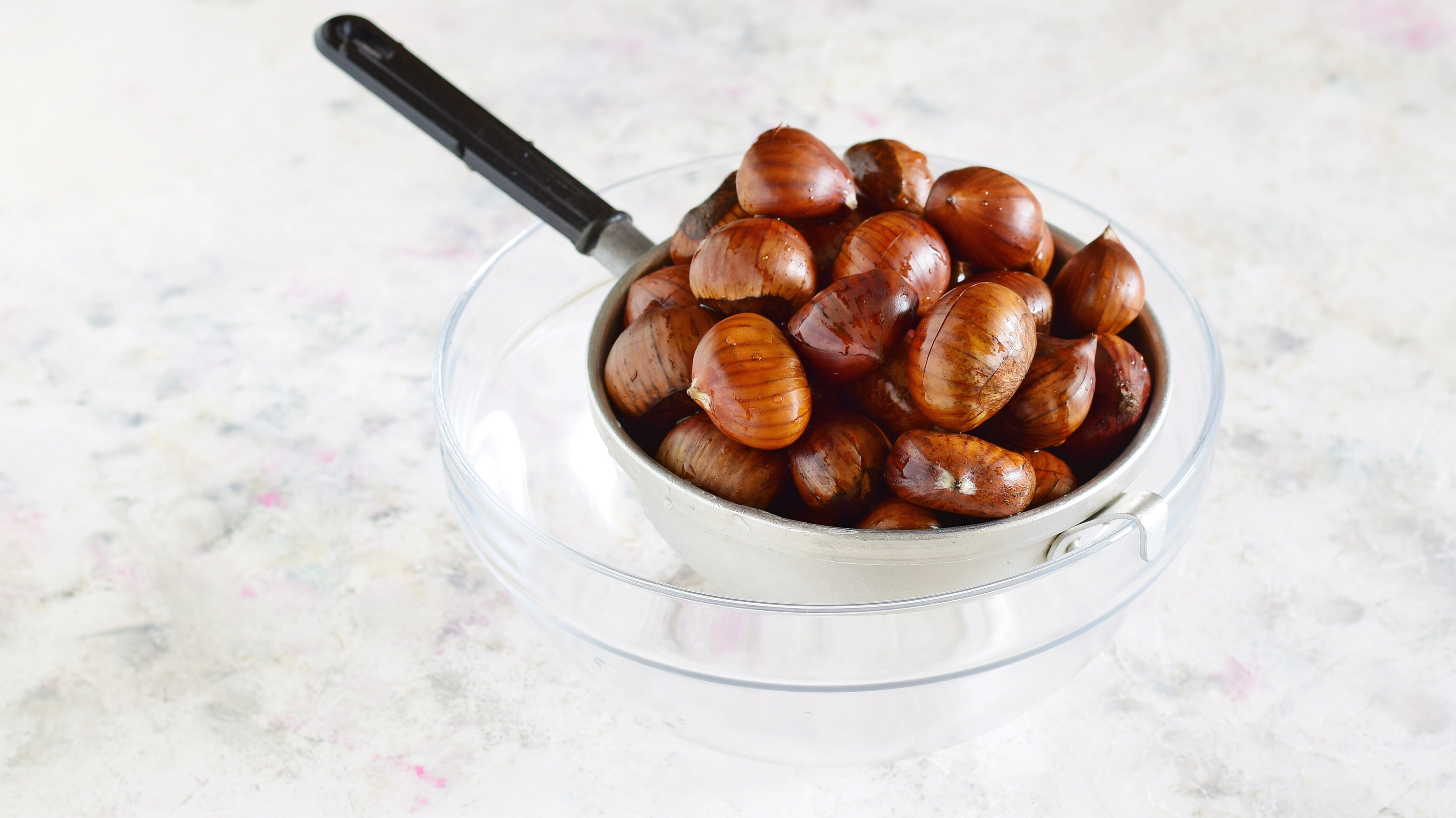 Per un risultato ottimale, scegli castagne che abbiano più o meno la stessa dimensione, così la cottura sarà uniforme; inoltre, accertati che siano integre e senza macchie, né fori.