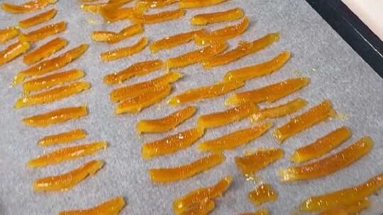 Puoi conservare le caramelle di scorza di arancia per qualche giorno in frigorifero, in un contenitore ermetico.