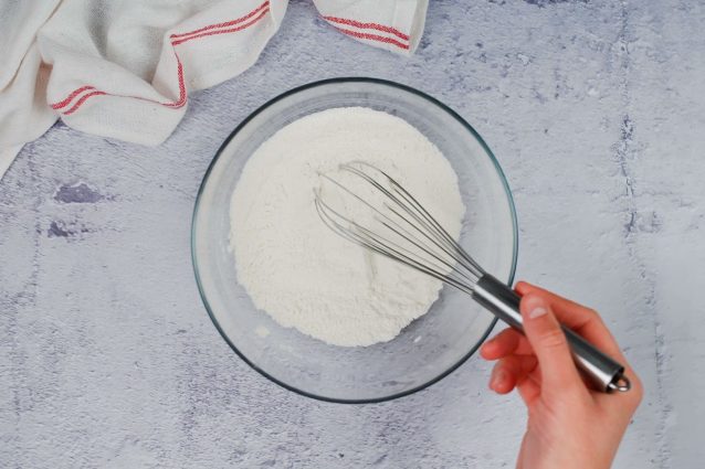 In un'altra ciotola unisci la farina con l'amido di mais e lievito per dolci 3.