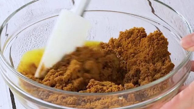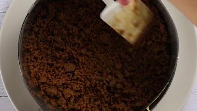 Sbriciola i biscotti nel frullatore 1. Mettili in una ciotola e mescola con il burro fuso 2 fino ad amalgamare bene gli ingredienti 3.