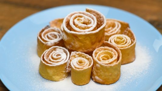 Puoi conservare le chiacchiere arrotolate per 2-3 giorni in un contenitore ermetico.