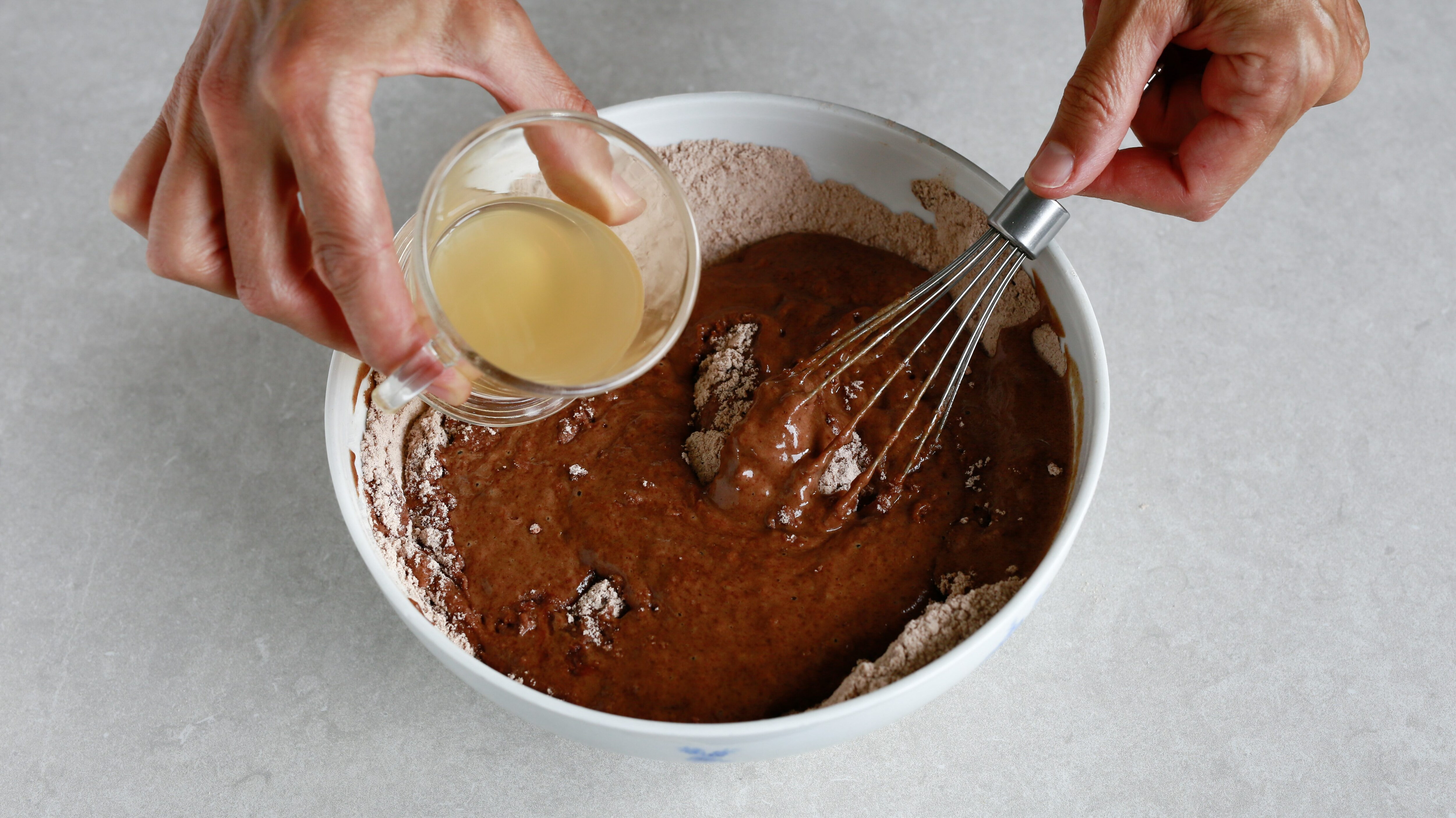 Aggiungete man mano anche il succo di mela continuando a mescolare con la frusta 6. Incorporate infine l'aceto.