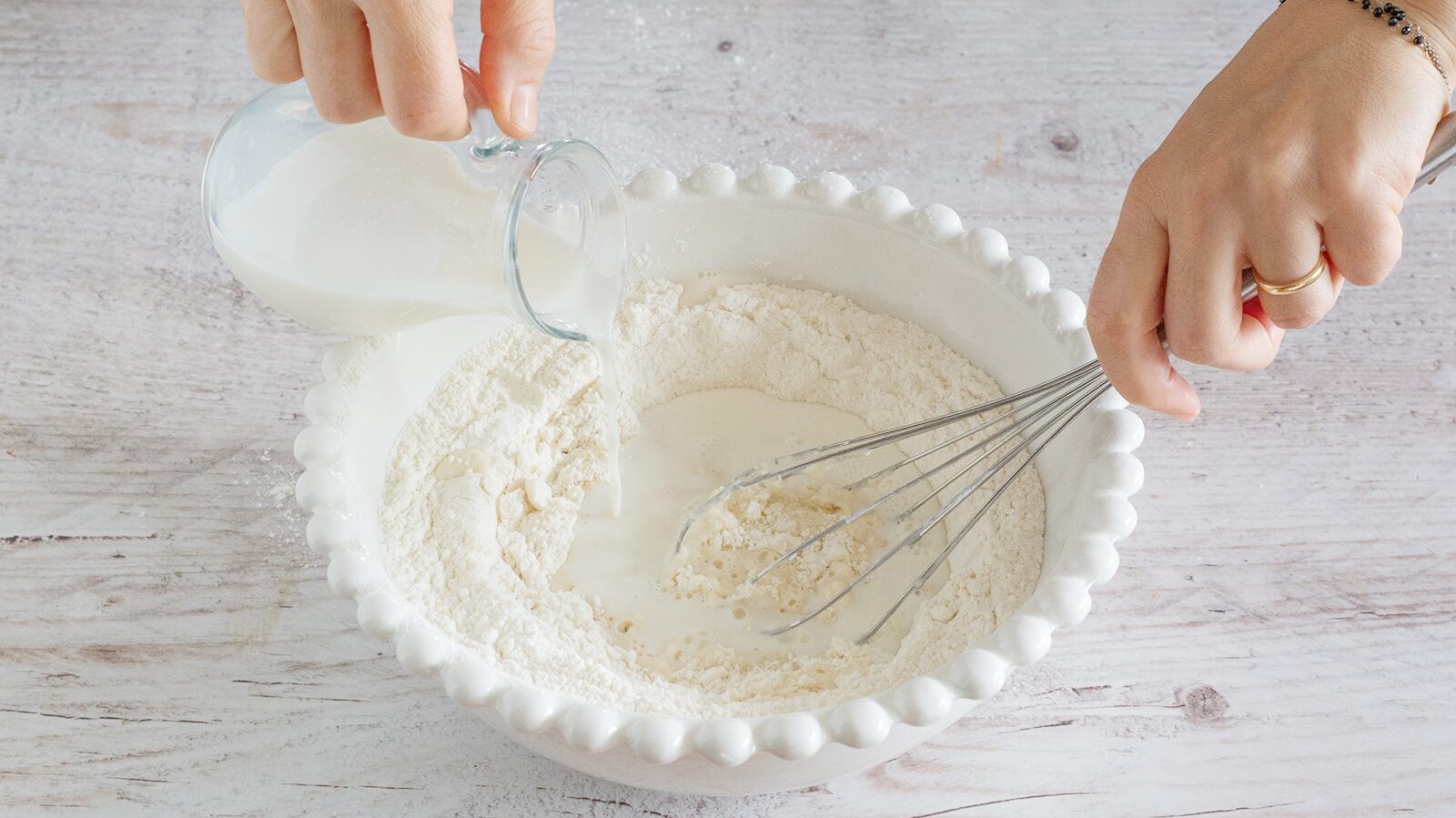 Prosegui a lavorare con una frusta 6 fino a ottenere un composto cremoso, omogeneo e privo di grumi.