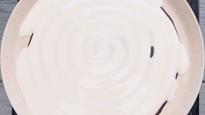 Trasferite il composto al cacao in una bottiglia da pasticceria e fate una spirale nella padella con un po' d'olio 4. Versate il restante composto chiaro 5, distribuitelo e cuocete le crêpes su entrambi i lati 6.