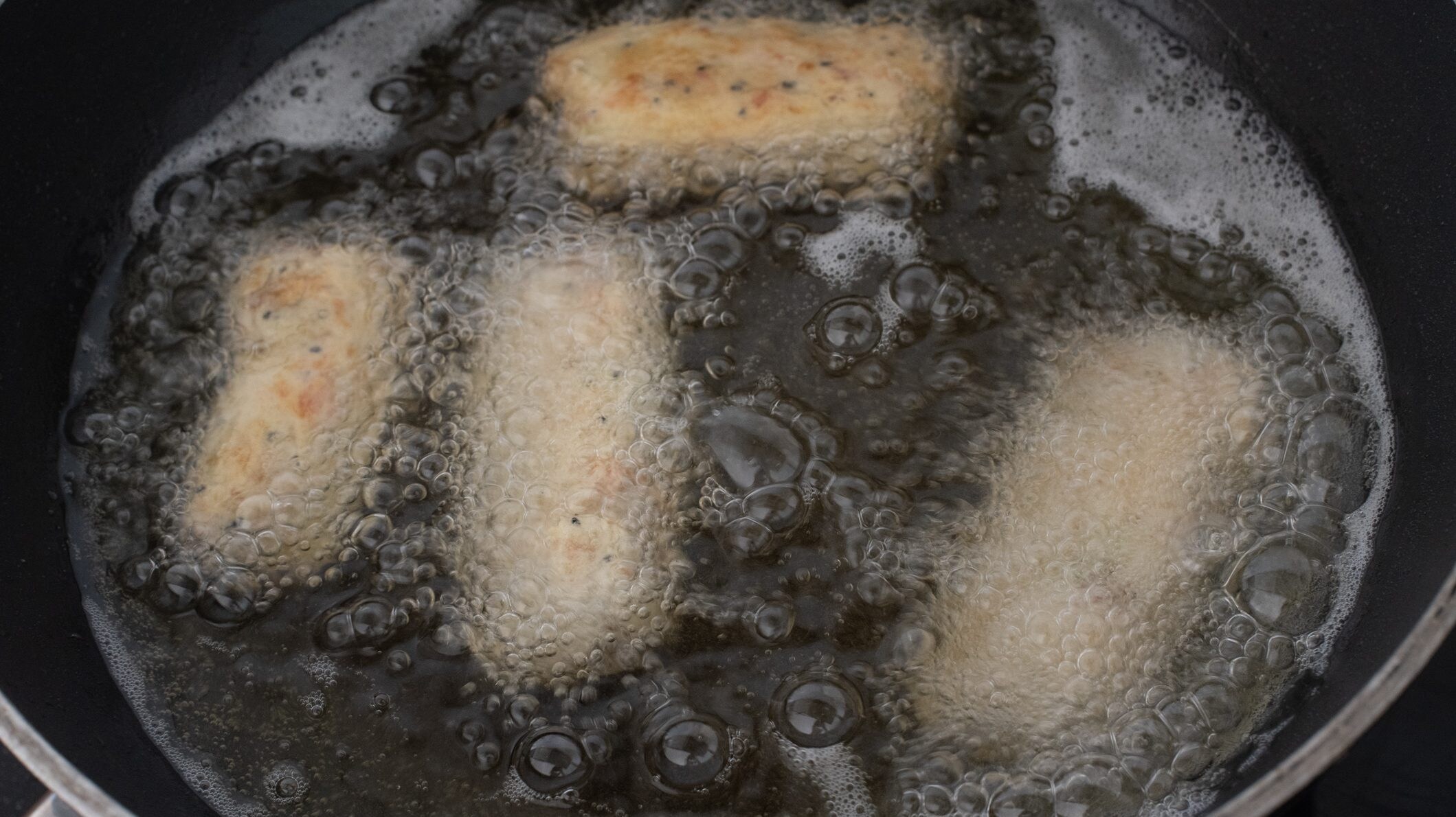 Fate scaldare abbondante olio in una padella, mettete poche crocchette alla volta e friggetele 5, finché non saranno ben dorate.