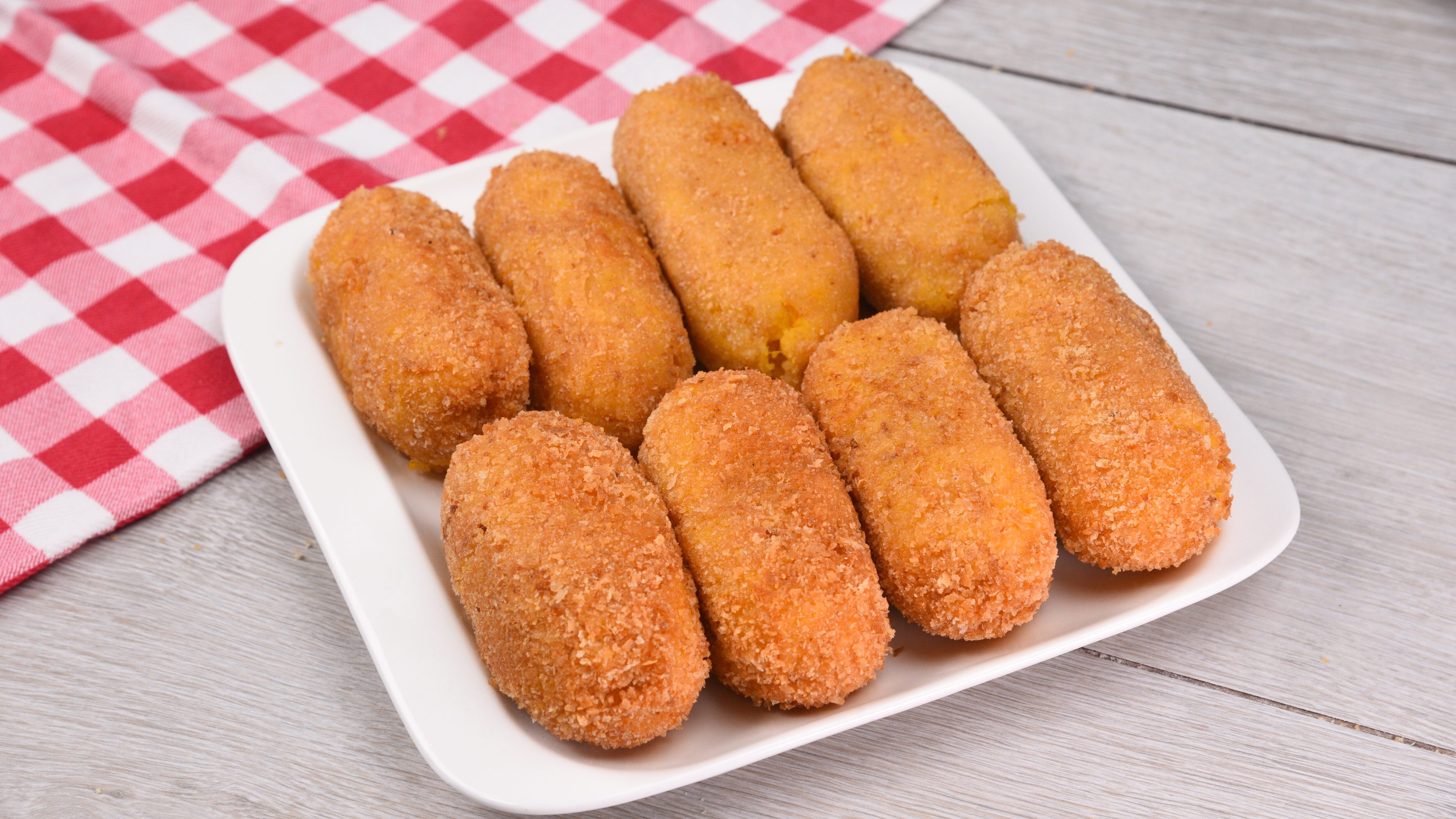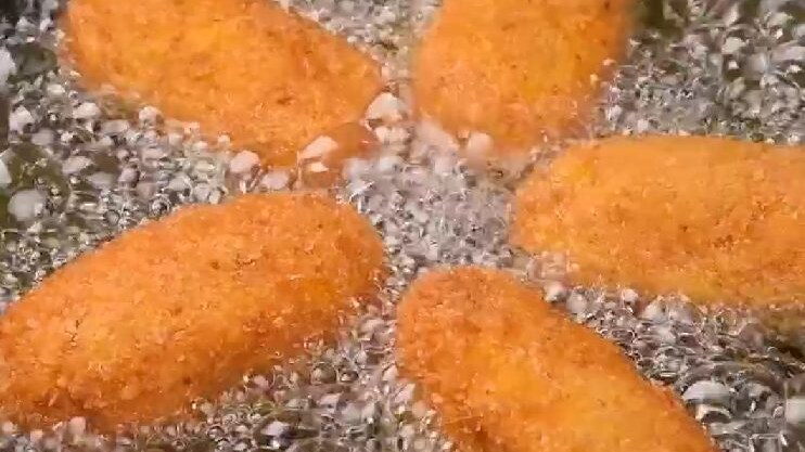 Impana le crocchette nelle uova sbattute 10 e nel pangrattato 11. Friggi nell’olio bollente fino alla doratura.