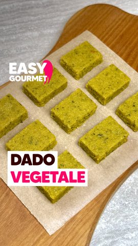 Il dado vegetale fatto in casa si prepara con verdure fresche, olio extravergine di oliva e sale – noi abbiamo utilizzato sedano, carote, cipolla, patata, zucchine, pomodoro, porro, aglio, prezzemolo e spinacino – senza conservanti e additivi; è ideale da utilizzare come base di minestre e zuppe, da impiegare per insaporire risotti, arrosti e spezzatini di carne o da usare quando non hai tempo di realizzare il classico brodo vegetale e hai bisogno di una preparazione espressa.