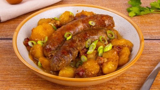 Per una resa ottimale, scegli delle patate a pasta gialla, dalla polpa soda, le migliori per cotture prolungate; se preferisci, puoi sostituire il peperoncino di Cayenna con paprica dolce, usare strutto al posto del burro e omettere il cipollotto. Al posto delle salsicce irlandesi, andrà benissimo la luganega; quanto alla birra, la più indicata è la stout, simbolo indiscusso d'Irlanda: se preferisci, però, puoi optare per la Porter o per altre tipologie di tuo gradimento.