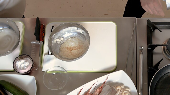 Pulisci i gamberoni eliminando il carapace, poi spolverizzali di farina.