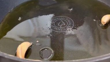 Ricava gli gnocchi con l'aiuto di un tarocco e passali sui rebbi di una forchetta 7, per donare la caratteristica forma. Per preparare il sugo: rosola gli spicchi d'aglio in padella con olio extravergine di oliva 8, aggiungi i pomodorini, la passata di pomodoro, il sale e cuoci a fuoco lento 9.