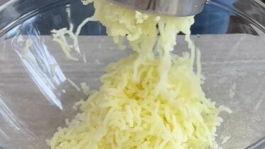 Inizia lessando delle patate in acqua per circa 40 minuti 1. Nel mentre affetta finemente le cipolle e cuocile in padella con un filo d’olio, facendole imbiondire 2. Quando le patate sono pronte sbucciale 3.