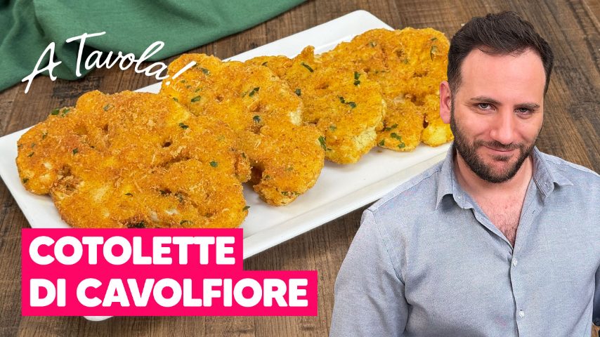 Le cotolette di cavolfiore sono un secondo piatto vegetariano stuzzicante e gustoso; per realizzarle, ti basterà tagliare il cavolfiore crudo a fette, impanarle in farina, uovo e mix di pangrattato, parmigiano, prezzemolo, spezie e friggerle fino a doratura o cuocerle in forno. Il risultato sono delle cotolette super croccanti fuori e tenere al cuore, ideali per il pranzo o la cena da accompagnare con un'insalata mista o con verdure di stagione. Ecco i passaggi per prepararle con il nostro Elpidio in modo facile e veloce.