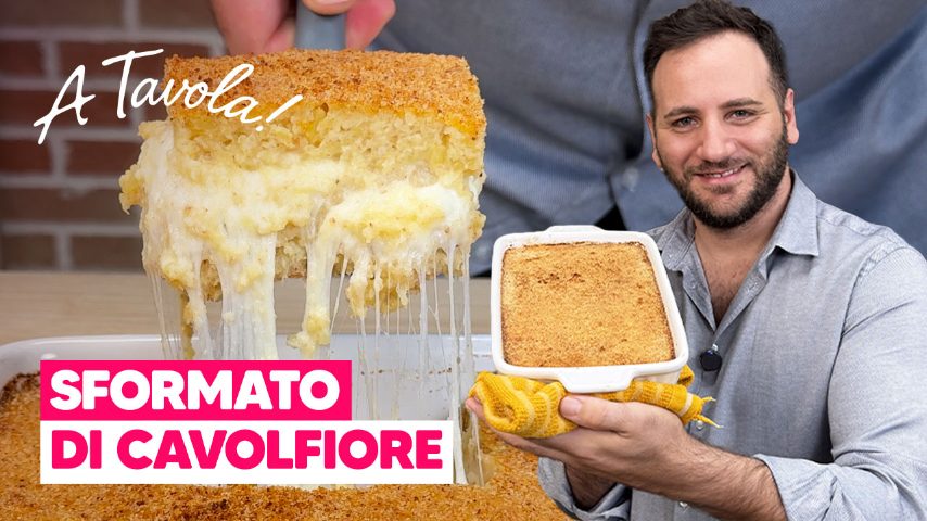 Lo sformato di cavolfiore è una ricetta semplice e golosa, preparata qui dal nostro Elpidio con un impasto cremoso, intervallato da uno strato di mozzarella filante, a base di patata e cavolfiore, lessati e ridotti in purea, uovo, parmigiano grattugiato e pangrattato.