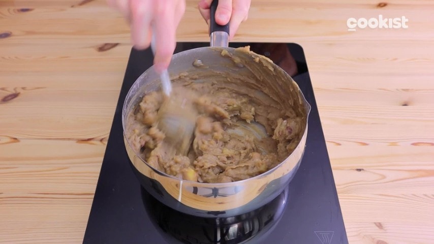Porta sul fuoco e cuoci, mescolando continuamente, per circa 25-30 minuti o finché le castagne non saranno sfaldate e cremose 2.