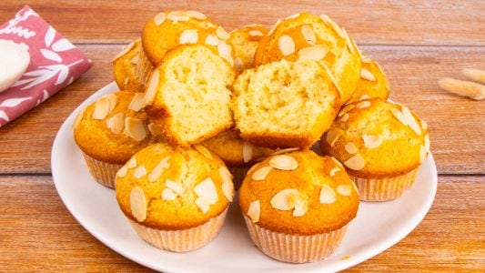 I muffin alle mandorle sono dei dolcetti monoporzione a base di farina di mandorle, farina 00, lievito per dolci, uova, zucchero, latte, olio di semi ed essenza di vaniglia, decorati in superficie con mandorle a lamelle. La preparazione è semplicissima, perché gli ingredienti saranno amalgamati tutti in un'unica ciotola, così il composto sarà subito pronto da versare nei pirottini per muffin: i dolcetti dovranno poi cuocere in forno per 20 minuti, pronti da gustare morbidi e profumati per la colazione e la merenda di tutta la famiglia. Ecco come preparali in modo facile e veloce.