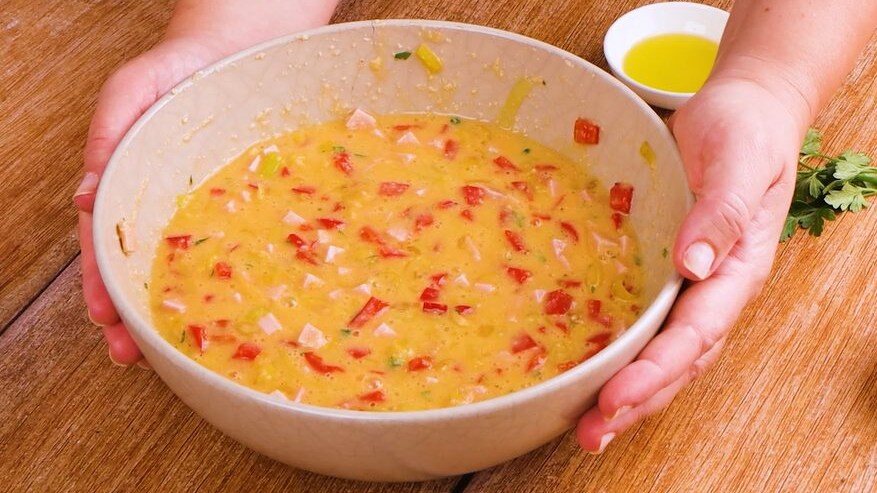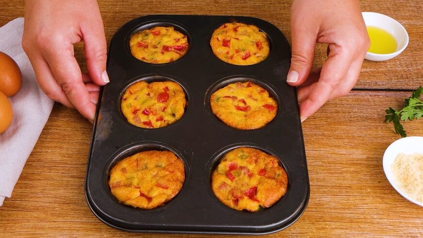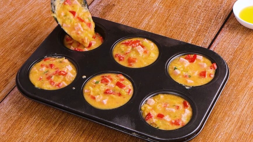 Riempi uno stampo da muffin oliato con il composto di uova 8.