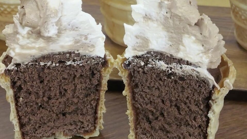 I muffin nel cono gelato o conomuffin, sono dei dolcetti che dovete assolutamente provare se siete amanti dei muffin americani. Una ricetta semplice e deliziosa ideale come sfiziosa merenda, da servire come originale dessert o per un buffet di compleanno. Nella nostra ricetta abbiamo realizzato l'impasto dei muffin al cioccolato, versato direttamente nei coni gelato e cotto in forno. Abbiamo poi decorato i conomuffin con panna montata bianca e alle nocciole, ma potete decorarli anche con la glassa colorata o come più vi piace. Ecco come prepararli con pochi passaggi per sorprendere i vostri ospiti.
