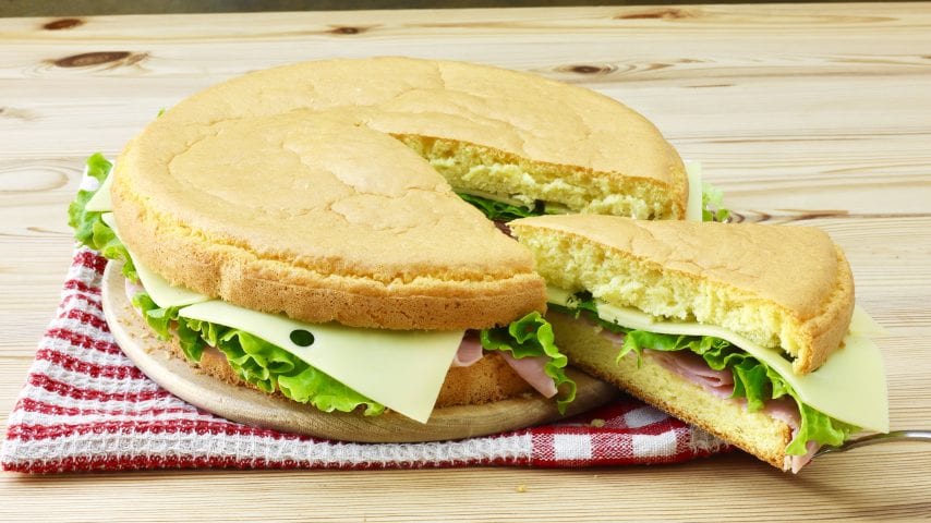 Una volta pronto, infatti, il pan di Spagna salato è perfetto per essere imbottito con prosciutto cotto o altri salumi di tuo gradimento, formaggi morbidi o stagionati, insalata e verdure croccanti, sottaceti e tutto ciò che preferisci. Puoi servirlo intero, come nel nostro caso, oppure tagliarlo a fettine da utilizzare, al posto del pane, per realizzare sfiziosi tramezzini e tartine. In qualsiasi forma, sarà ideale da servire come antipasto in occasione di una cena con ospiti speciali, un buffet in piedi o un aperitivo con gli amici.