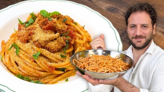 Scopri come preparare la pasta alla paolina seguendo passo passo le spiegazioni e i preziosi consigli di Elpidio. Se ti è piaciuta questa ricetta, prova anche gli spaghetti di magro e gli spaghetti alla poverella, oppure cimentati con la pasta con i broccoli arriminati.