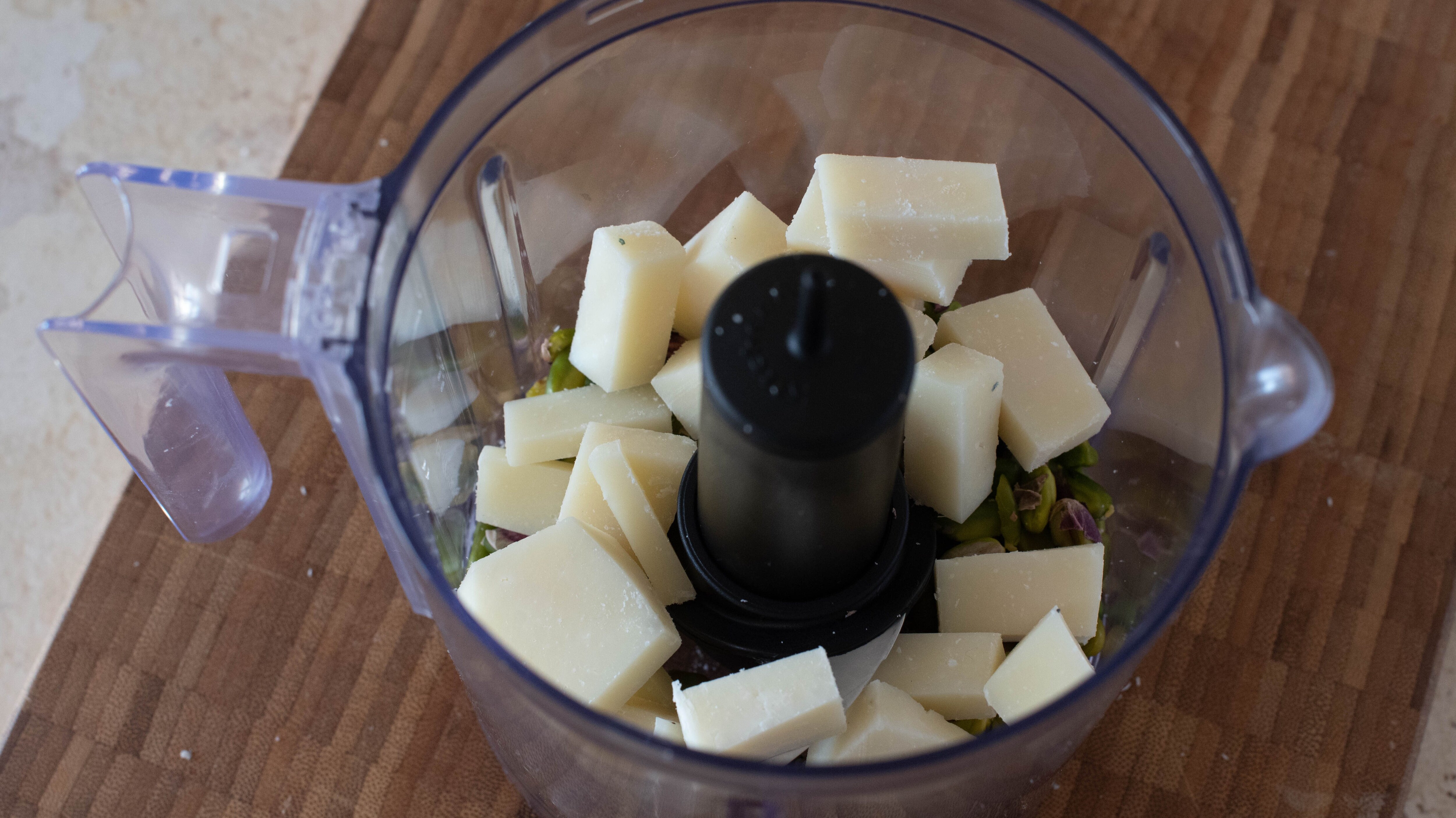 Trasferite il parmigiano nel bicchiere del frullatore e versate l'olio 9.