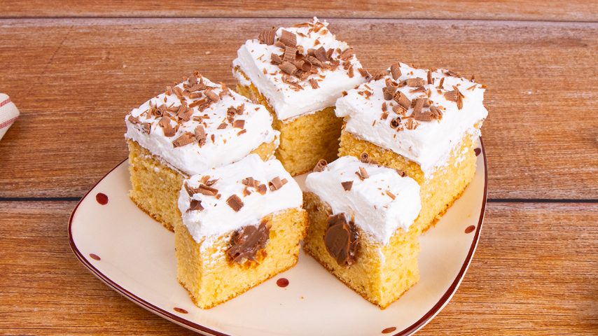 Tipicamente servita tagliata a cubotti, la poke cake è perfetta da portare in tavola come lieto fine pasto o per una merenda con ospiti, ma anche per una ricorrenza speciale o un buffet di festa.