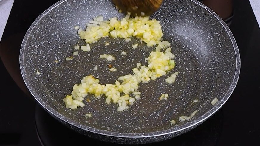 Preparare la ratatouille in casa è molto semplice. Per prima cosa prepariamo il sugo di pomodoro, che metteremo alla base delle verdure. In una padella antiaderente fai soffriggere la cipolla 1.