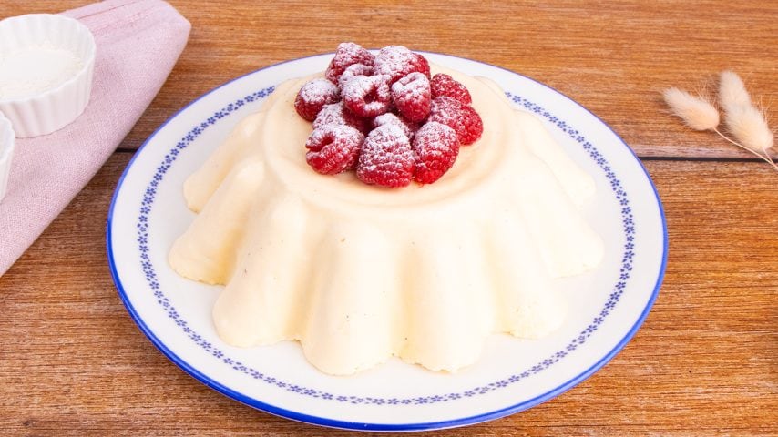 Il risultato è una sorta di mousse densa e strutturata, dal sapore delicato, perfetta da guarnire con lamponi freschi o altri frutti di bosco e servire come lieto fine pasto o all'ora della merenda.