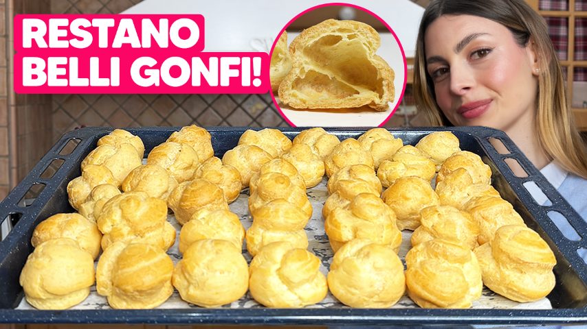 Il passaggio in forno farà gonfiare e asciugare l'impasto, rendendolo dorato e croccante fuori, vuoto all'interno, e perfetto da farcire, grazie al suo gusto neutro, con panna montata, creme di ogni tipo e mousse, sia dolci sia salate.