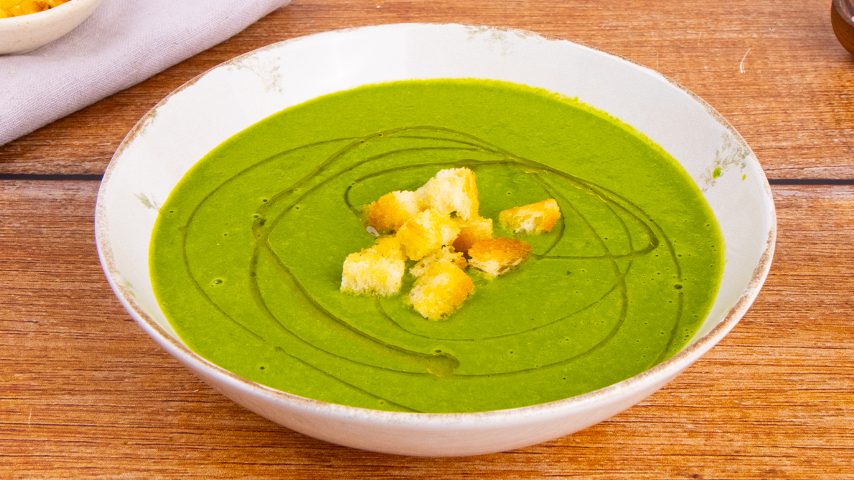 Distribuisci la vellutata nelle fondine individuali e completala con dei crostini croccanti e un filo d'olio a crudo 6.