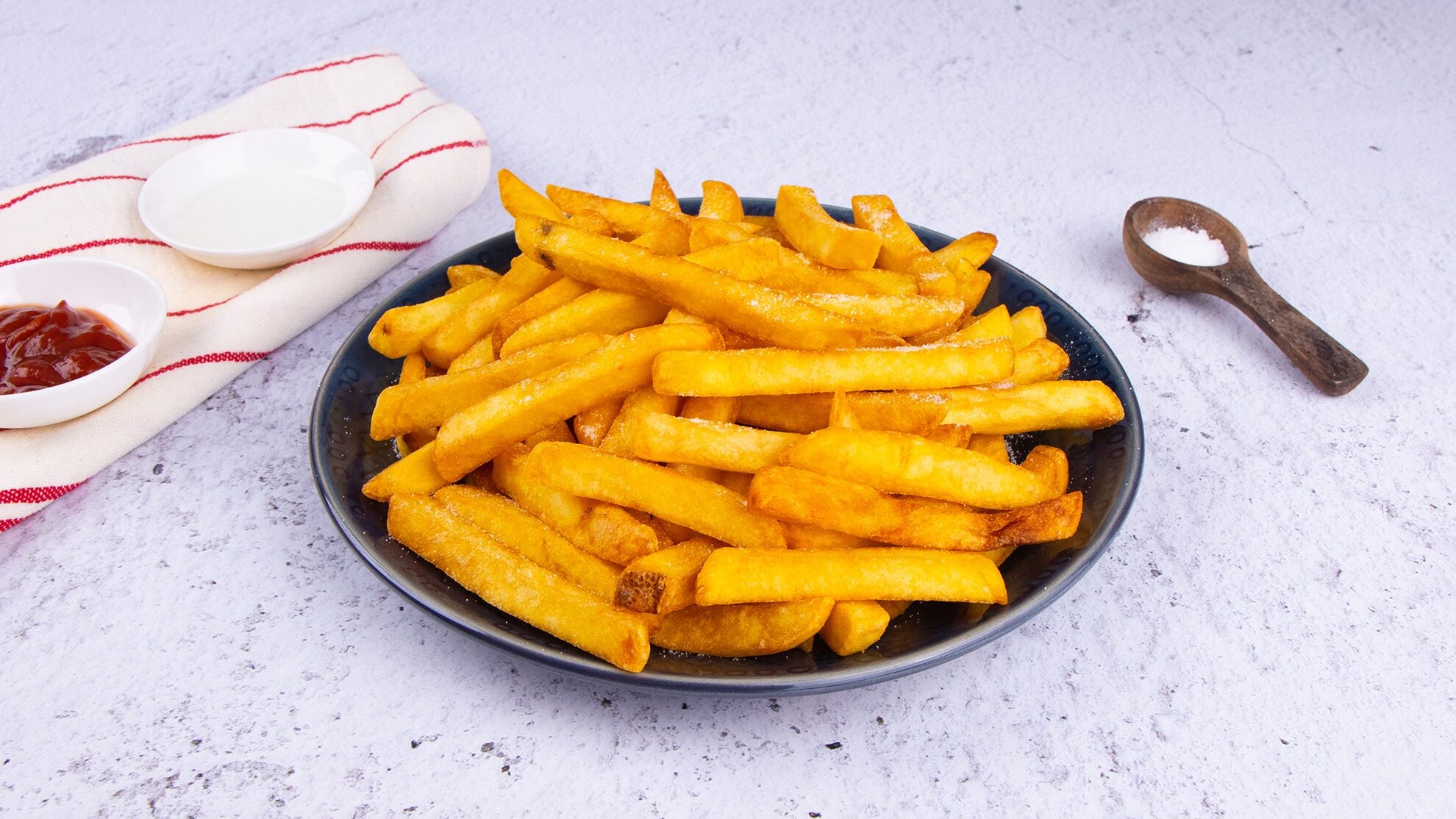 Le patatine fritte, conosciute anche come french fries o semplicemente fries, sono un piatto tanto semplice quanto irresistibile, amato da sempre da grandi e piccini. Si tratta di bastoncini di patate – ma anche fette o spicchi – che vengono fritti in olio bollente secondo il metodo della frittura profonda e gustati subito, caldi e croccanti. Ideali come snack o finger food da intingere in sfiziose salse – ketchup, maionese e salsa barbecue su tutte – sono perfette anche come contorno di hamburger, pollo e secondi piatti di pesce.