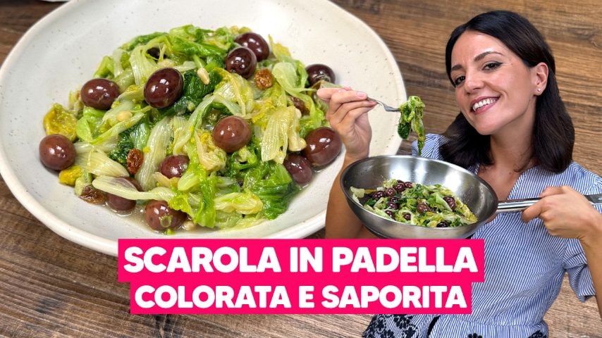 La scarola in padella è un contorno nutriente e saporito, realizzato con scarola, varietà di indivia ricca di benefici, acciughe, olive, capperi, pinoli e uvetta. Si tratta di una preparazione tipica del Sud Italia e, in particolare, della città di Napoli, perfetta per accompagnare secondi di carne e di pesce, come braciole, polpette o pesce spada alla piastra, formaggi freschi e stagionati o piatti vegetariani.