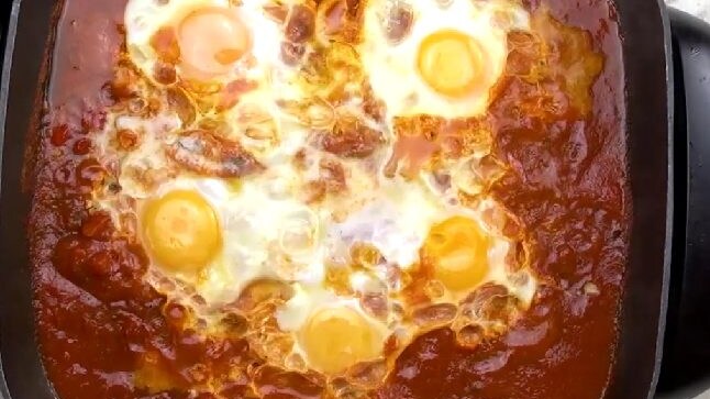 La shakshuka è un secondo piatto di origine tunisina e algerina molto diffusa nel Medioriente, in Nord Africa e introdotto nella cucina israeliana dagli ebrei magrebini emigrati in Israele. Una ricetta a base di uova cotte nel pomodoro speziato, simile alle nostre uova in Purgatorio, ma arricchita con peperoncino, peperone rosso, paprika, cumino e prezzemolo. Il nome shakshukah, infatti, deriva dal berbero e significa "mistura". In circa mezz'ora la pietanza sarà pronta da servire: ideale per una cena sfiziosa e saporita da gustare in famiglia o con gli amici.