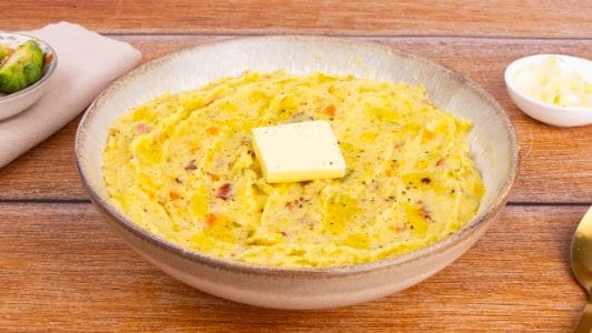 Distribuisci lo stoemp belga sui piatti individuali e servi con una noce di burro e una macinata di pepe in grani 14.