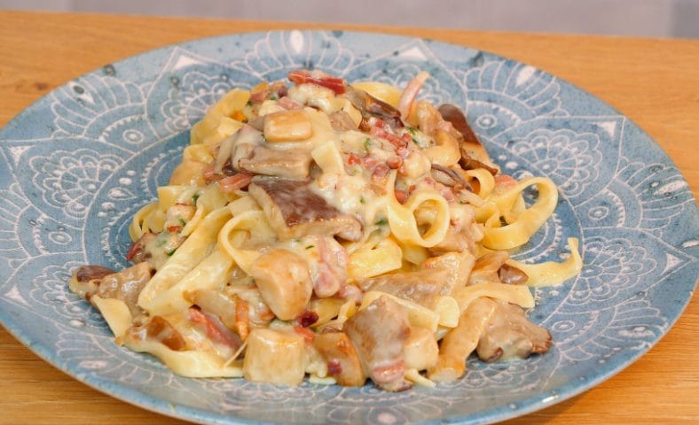 Le tagliatelle con funghi, speck e brie sono un primo piatto autunnale molto facile da preparare e dal risultato davvero saporito. Si preparano con un sughetto a base di speck, funghi, brie, parmigiano, pepe e olio extravergine di oliva, con l'aggiunta di un po' di acqua di cottura delle tagliatelle, per mantecare il tutto. In poco tempo otterrai un primo cremoso, profumato e molto gustoso che conquisterà i tuoi ospiti. Ecco come prepararle.