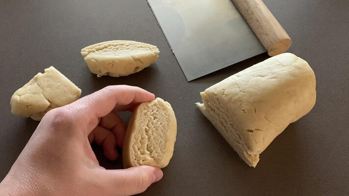Trascorso il tempo, riprendi l'impasto e dividilo con un tarocco in tanti pezzetti da 50 gr ciascuno 4.