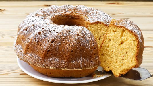 Versa il composto in uno stampo da ciambellone precedentemente imburrato e infarinato 9. Cuoci in forno a 180 °C per circa 45 minuti.