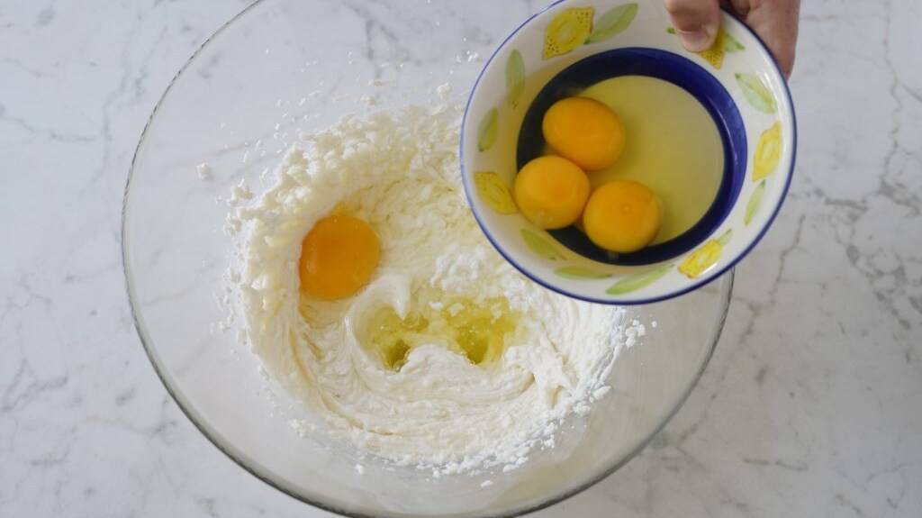 Monta il composto fino a ottenere una crema liscia e vellutata, quindi incorpora le uova una alla volta 2, e mescola con cura.