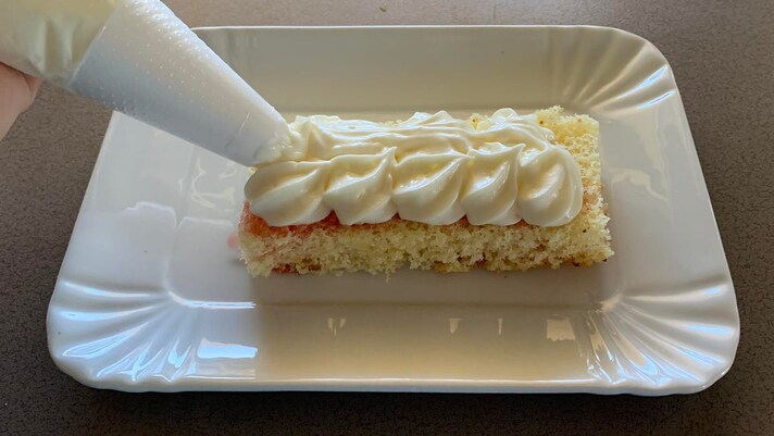 Ricava dal pan di Spagna dei dischi e poi dei rettangolini 10.