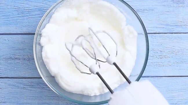 Montate gli albumi con la frusta elettrica 1. In una ciotola a parte unite lo zucchero semolato e di canna, i tuorli d’uovo e sbattete con la frusta elettrica 2. Aggiungete il burro, l’acqua e mescolate 3.