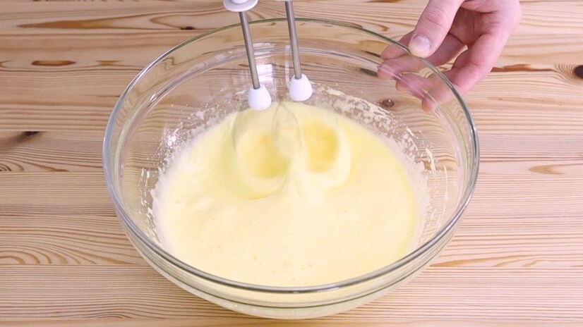 Monta gli ingredienti con le fruste elettriche fino ad ottenere un composto alto e biancastro 2.