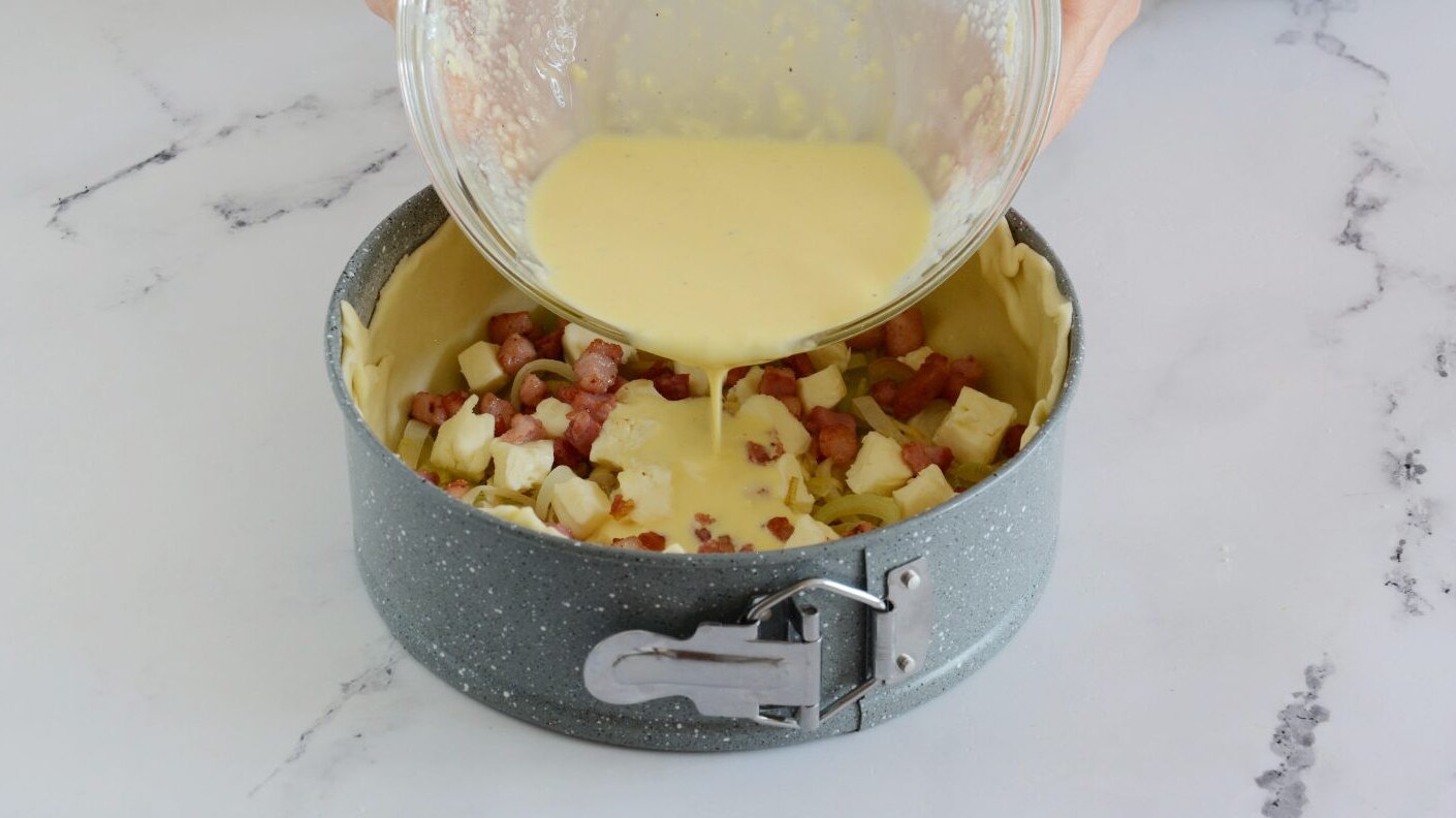 Riprendi quindi lo stampo con l'involucro di brisée e versa all'interno i porri stufati 15.