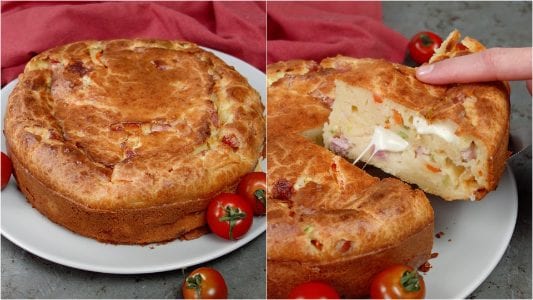 Come preparare la torta salata ripiena di prosciutto e formaggio