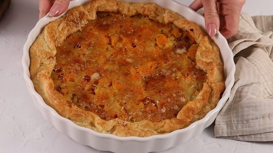 La torta salata zucca e patate è pronta per essere servita tiepida 11.
