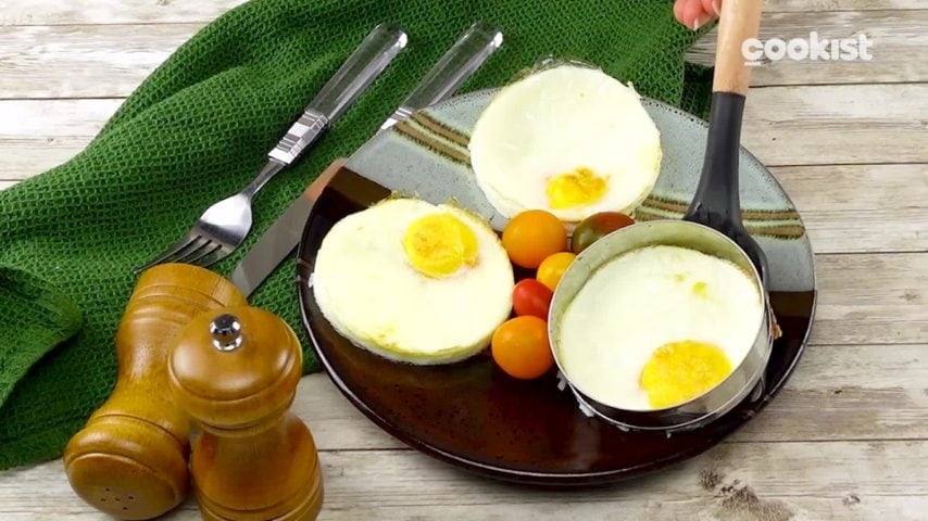 Rimuovi l’uovo a occhio di bue dagli stampi e aggiungi il pepe. Le uova sono pronte per essere servite (4).
