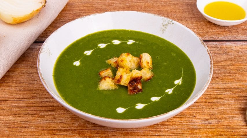 Noi abbiamo scelto gli spinaci freschi, cotti nel brodo vegetale con le patate a tocchetti, la cipolla e il sale. La vellutata sarà poi servita con crostini di pane tostato e un giro di olio extravergine di oliva. Ecco come prepararla in pochi e semplici passaggi.