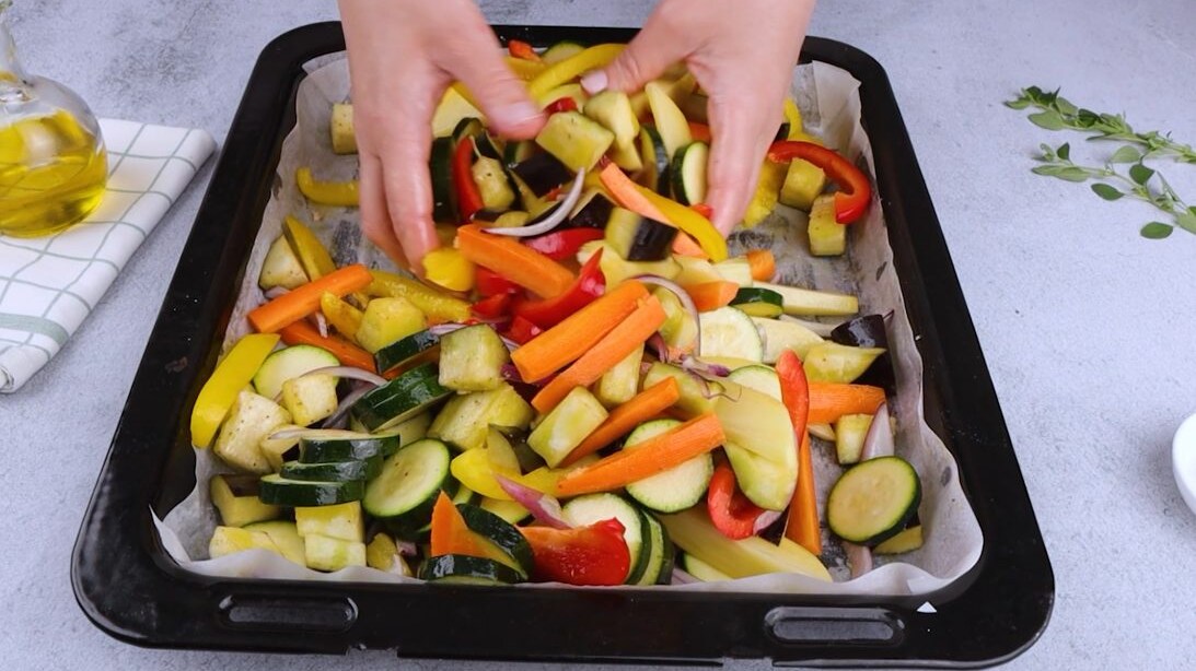 Versa le verdure in una teglia ricoperta da carta forno 7.