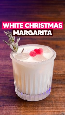 Il White Christmas margarita è un drink dolce, denso e scenografico, il cocktail di Natale da realizzare al posto del classico margarita per l'aperitivo natalizio. Si prepara con tequila, latte di cocco, triple sec e succo di lime, shakerati con del ghiaccio; il drink sarà poi versato in un bicchiere con il bordo intinto nello sciroppo di zucchero e nello zucchero semolato. Una volta pronto, servilo con un rametto di rosmarino e mirtilli: noi li abbiamo brinati con lo zucchero, per un effetto più sorprendente. Ecco come prepararlo con il nostro Elpidio e stupire i tuoi ospiti.
